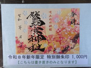 また、お正月の限定御朱印も2月15日まで頒布しておりますので、ご覧ください。無くなり次第頒布終了となりますのでご了承ください。
