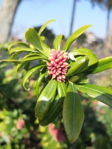 また、沈丁花も蝋梅と競うようにたくさんの花を咲かせ、近づくといい香りを漂わせています。